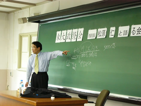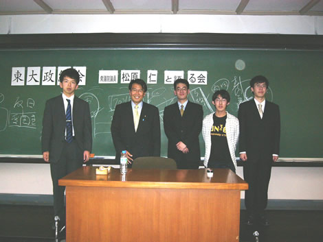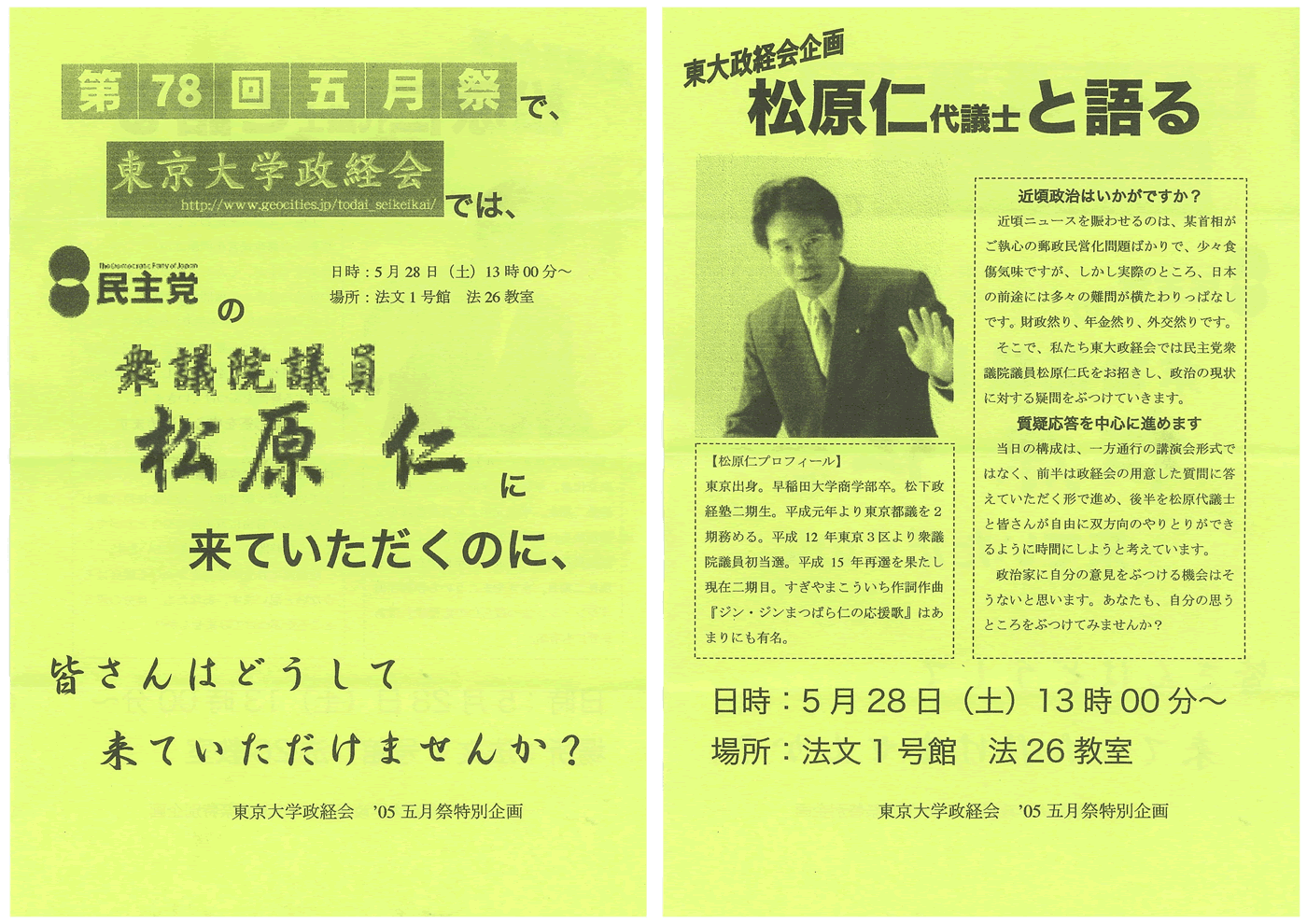 東京大学本郷キャンパス 法文1号館 法26教室にて、東京大学政経会’05五月祭特別企画「松原仁代議士と語る」を開催致しました。